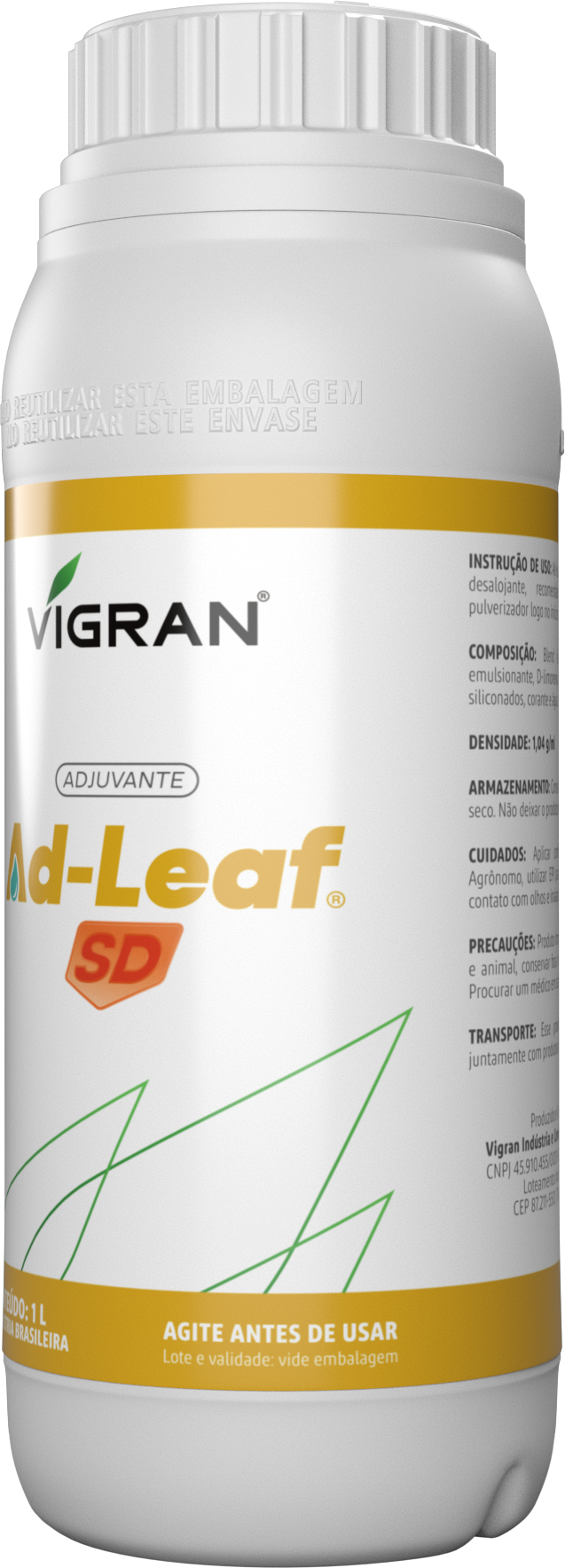AD-LEAF SD é um adjuvante com ação desalojante, que provoca irritação severa nas pragas, levando-as a se movimentarem e entrarem em contato com o inseticida, o que potencializa a sua ação.